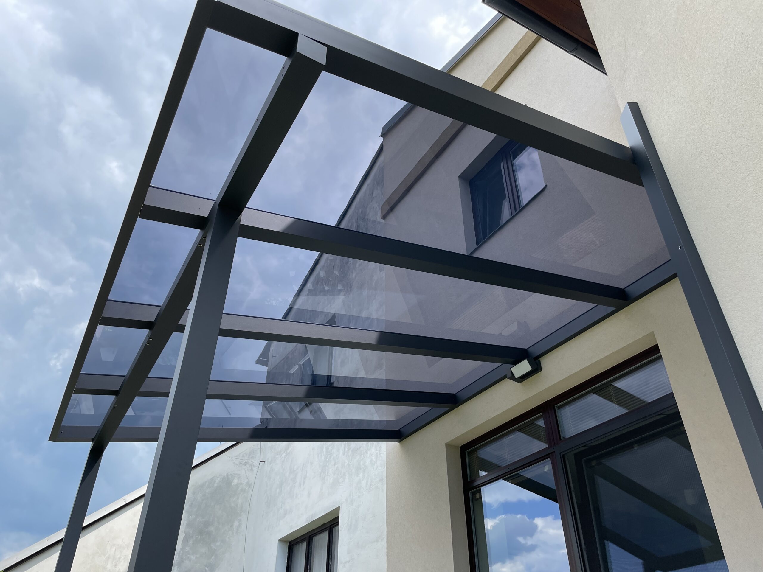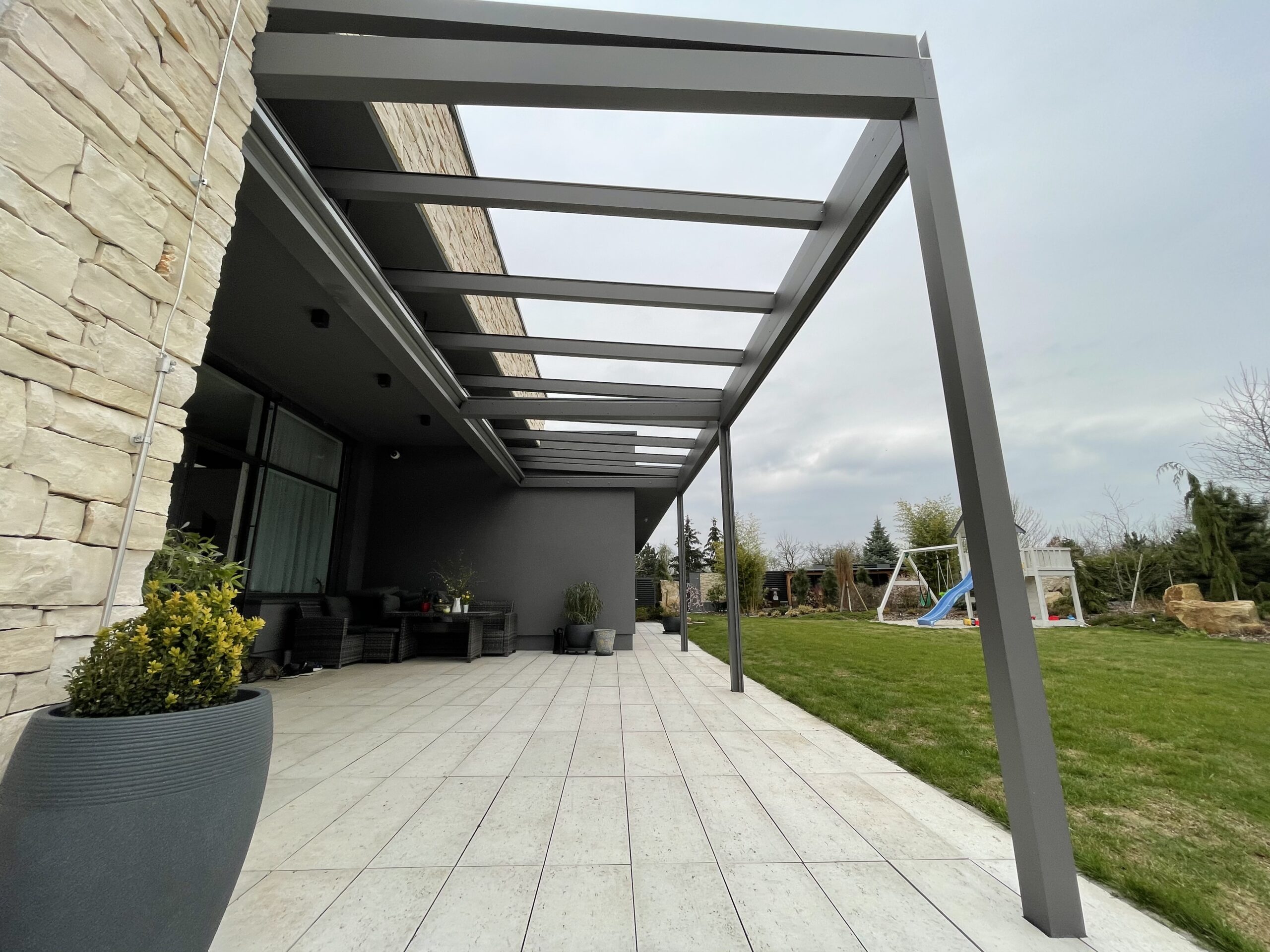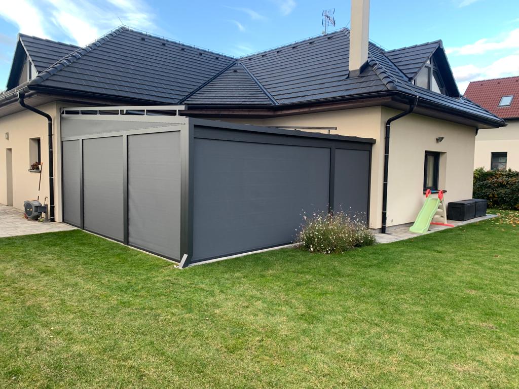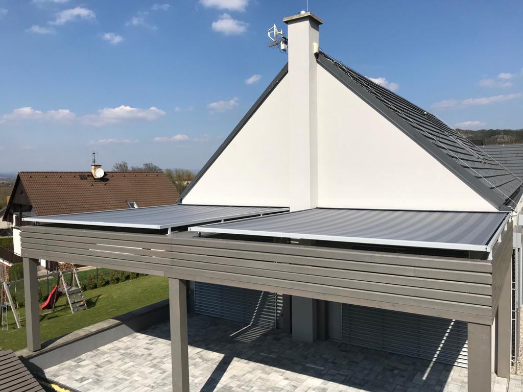 Moderní a funkční zastřešení venkovních prostor, které umožňuje komfortní posezení za každého počasí. Lze je doplnit o osvětlení nebo boční clony.